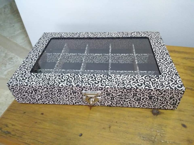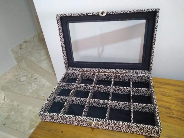 Caixa Grande 15 divisórias tampa vidro estapa e fecho